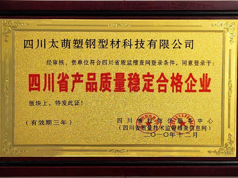 四川省产品质量稳定合格企业