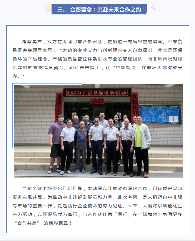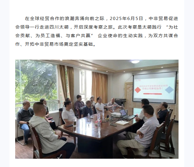 【太萌资讯】热烈欢迎中非贸易促进会领导莅临四川太萌参观指导!
